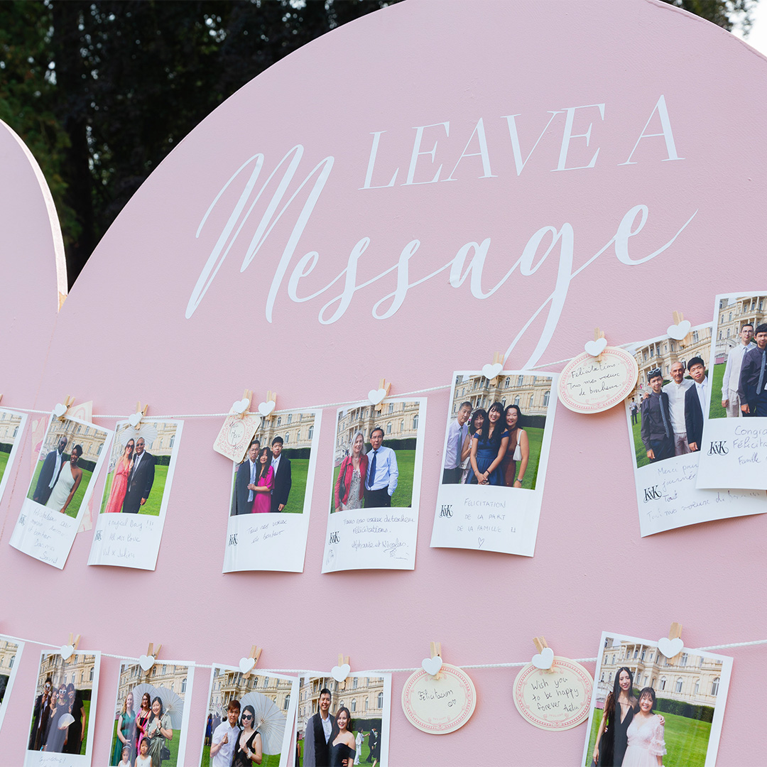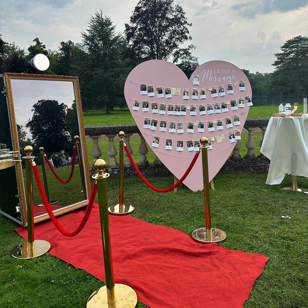 Apportez une touche romantique et originale à votre événement grâce à ce grand panneau en forme de cœur, idéal pour créer un coin photo, un mur à messages, ou un espace souvenirs Polaroïd.