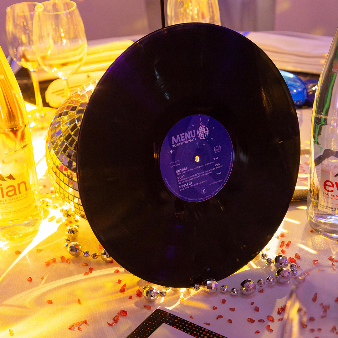 À disposer sur un mur, suspendus en guirlande, posés sur une table ou utilisés comme sous-assiettes ou signalétique originale, les vinyles s’intègrent dans tous types de décors festifs ou thématiques.